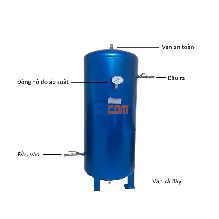 Sản phẩm được trang bị đồng hồ ổn áp ở thân bình, van xả ở đáy bình, van an toàn có khả năng tự ngắn bảo vệ người dùng tránh được những rủi ro khi lượng khí nén vượt quá mức quy định.