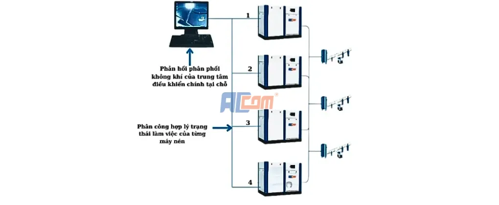 Chức năng điều khiển từ xa trong mạng máy tính giám sát, máy tính lần lượt kiểm tra các thông số hoạt động của từng máy nén khí