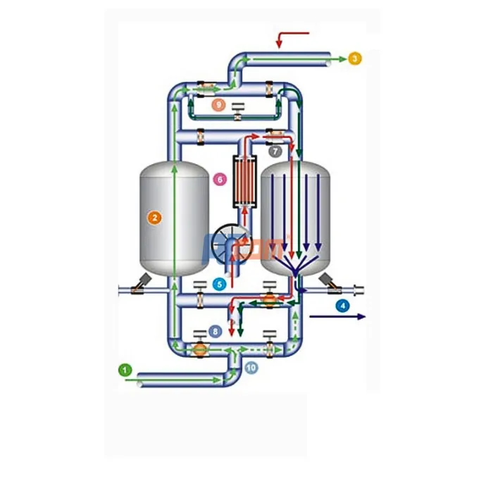 • Tháp thiết kế nhỏ gọn, tiết kiệm 95% nhiệt lượng hấp thụ, nhiệt dự trữ duy trì nhiệt độ khí làm sạch trong quá trình tái tạo, tăng tối đa khả năng của khí làm sạch để giảm thiểu lượng khí làm sạch cần thiết.